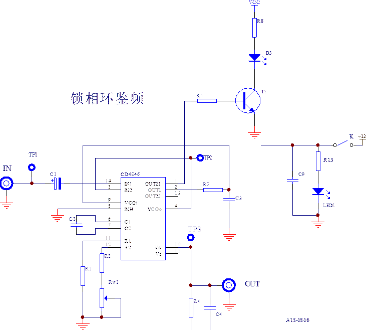 采用CD4046鎖相環集成芯片來實現鑒頻,其鑒頻實際電路如圖11-4所示。