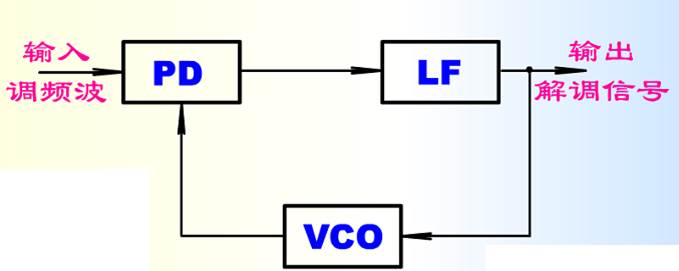 用鎖相環路可實現調頻信號的解調。如果將環路的頻帶設計得足夠寬 ,則壓控振蕩器的振蕩頻率跟隨輸入信號的頻率而變。若壓控振蕩器的電壓-頻率變換特性是線性的,則加到壓控振蕩器的電壓,即環路濾波器輸出電壓的變化規律必定與調制信號的規律相同。故從環路濾波器的輸出端,可得到解調信號。用鎖相環進行已調頻波解調是利用鎖相環的跟蹤特性,這種電路稱調制解調型PLL。鎖相鑒頻原理框圖如圖11-3所示