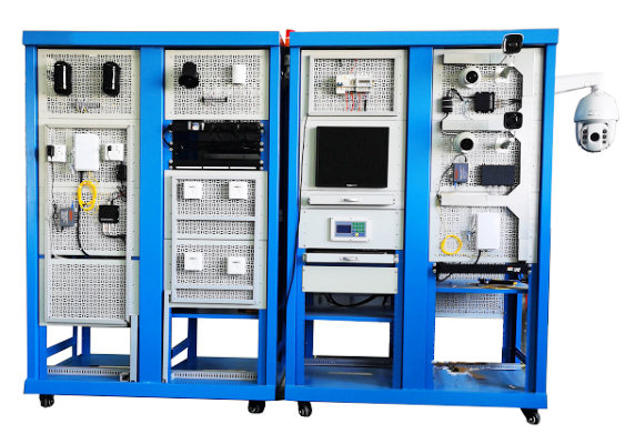 2.樓宇視頻監控實訓系統采用開放式和拆裝式結構設計,采用噴塑鋼型材+網孔板結構,結構堅固,配有常用電源控制,能對各系統進行供電、接線、調試運行和維護實訓和考核。設備有配有安全設備電源裝置,實訓臺還設有四個萬向輪和四個固定調節機構,便于移運和固定,有利于實訓室布局。