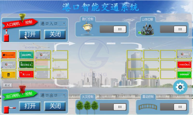 LGWL-GK01型 智能港口物流交通實訓系統以港口物流為背景,以貨物出入港口的流程為核心,以港口貨物的智能化裝卸與交通運輸為研究內容,構建的一套類似真實的現代化港口物流交通實訓系統,主要模擬周轉于倉庫與港口碼頭之間的貨物裝卸、運輸、盤點的流程,同時對港口周邊環境進行災害預警。
