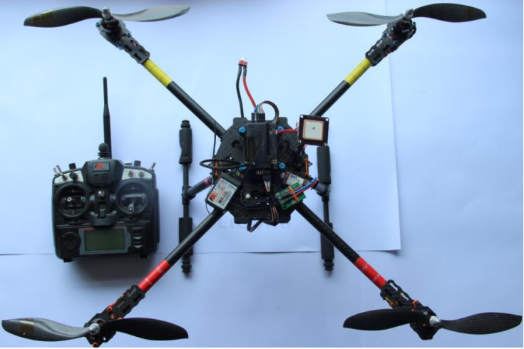 系統采用四軸飛行器作為航空運輸的載體,它主要由碳纖維四軸機架、ArduPilotMega 飛行姿態控制器、GPS定位模塊、915M無線數據傳輸模塊、電壓電流傳感器、鋰電池電壓測量模塊、2.4G 無線控制器、2.4G 無線接收器、三相直流無刷電機、三相直流無刷電機調速器、碳纖維1045正反槳、11.1V 3S鋰電池組、電池組平衡充電器等組成,提供全面的四軸飛行器開發資料。