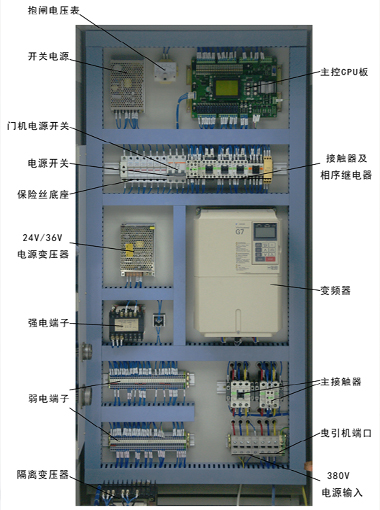 LG-ZDT03型 智能型串行通訊透明教學電梯實訓考核系統總體分為四大部分:透明井道部分、智能型串行通訊電梯專用電氣控制系統部分、變頻門機部分和曳引機部分。電梯井道各重要機械部件均采用透明有機玻璃,完全仿照真實電梯的結構縮小精制而成。電梯的電氣控制系統采用智能型串行通訊電梯專用控制系統,它包括主控器(主控電腦板)、轎廂控制器、指令控制器、樓層顯示控制器進行智能控制和安川變頻器(VVVF)調壓調速調頻驅動。門機部分采用鋼架結構,包含門機變頻器、光幕、廳門。曳引機部分包含減速箱、抱閘等,運行時門機部分和曳引機部分能和透明井道中的轎廂同步工作,功能及工作原理與實際電梯完全一樣。讓學員既能看到轎廂在井道中的運行情況又能看到實際廳門、轎門及曳引機的工作狀態。可根據相關電氣參數設置主板及變頻器參數及電梯快慢車、舒適感的調試,最后經過井道自學習后自動儲存在主控電腦板內。隨產品配備的"調試手冊"詳細說明了井道、機房、控制柜、轎頂、底坑等部分的布線、安裝、計算和注意事項,是培訓電梯維保人員及調試員的不二選擇,真正做到使學員學有所用、學以致用。