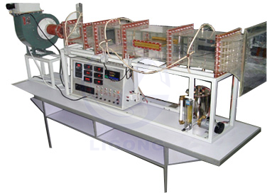 多翼式低噪音風機,自動調節風門,組合式有機玻璃風洞,有機玻璃實驗管段,紫銅平板試件,固態調壓模塊配電位器調節加熱功率,數顯電流表、電壓表顯示加熱電流電壓,風流量由畢托管配差壓傳感器測量,溫度由PT100熱電阻測量,8路萬能信號輸入巡檢儀顯示溫度、阻力、流量,不銹鋼支架。