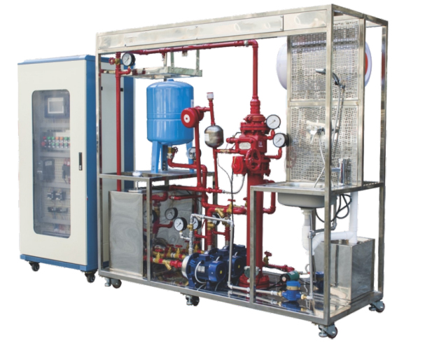 本裝置采用不銹鋼框架開(kāi)放式結(jié)構(gòu)設(shè)計(jì),主要由生活給水系統(tǒng)、消防給水系統(tǒng)、排水系統(tǒng)和控制系統(tǒng)共四部分組成。
