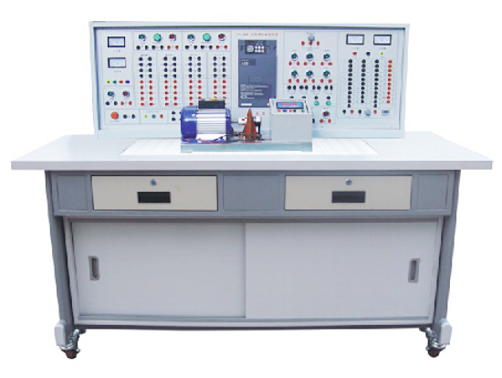 LGBP-203B型 變頻器實訓裝置由控制屏、實訓桌、變頻實訓組件、繼電接觸實訓組件、數字量/模擬量輸入輸出給定指示組件、三相異步電機、電機導軌、測速機構等組成。