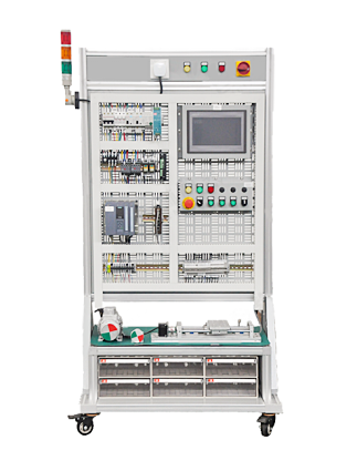 可編程控制器實驗臺綜合了實際工業生產中大量應用到的復雜控制過程的教學培訓裝置,根據教學設備的未來發展趨勢而專門設計。可編程控制器實驗臺涵蓋了機電一體化中所有的重要知識和技能,系統以SIEMENS S7-1200 PLC為主要控制器;工作臺由直流電機、傳感器、步進電機、變頻器、交通燈等典型應用模塊構成,是一個以現代工業設備為原型的機電一體化實訓考核裝置。