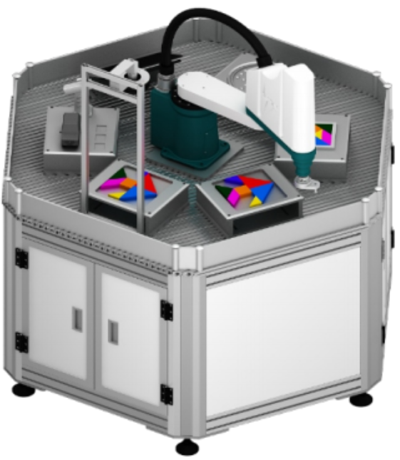 LGJ-LM01工業機器人多功能應用實訓裝置屬于典型的機器人基礎技能培訓應用設備,以四軸SCARA機器人為中心,根據任務要求配置不同任務載體,培養學生對機器人基礎知識的認知。該設備任務載體采用模塊化設計,具備獨立性、兼容性、可移植性等特點;并預留了擴展與升級的接口,根據市場需求進行不斷的開發升級或者學校用戶自行創新設計新的功能模塊。