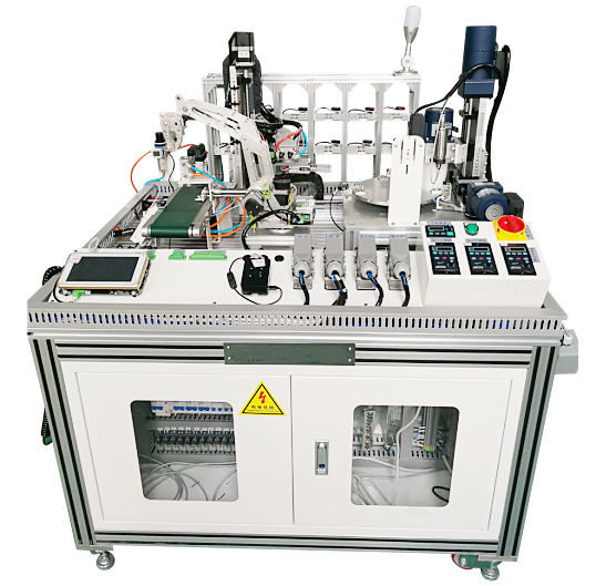 實訓臺依托工業背景,具有較完整的模塊化產線,包括感知設備、執行機構、可編程邏輯控制器、HMI觸摸屏、工業網關、工業物聯網云平臺等,能夠開展絲桿滑臺直線運動控制、轉臺旋轉運動控制、機械手坐標調試及多自由度運動控制、傳送帶控制及調速、工件到位檢測、氣缸分揀控制、機器視覺殘次品檢測、加工軸轉速溫度振動多參數監測、氣動壓力檢測、工業設備狀態監測數據上云、工件殘次品統計分析等工業控制應用實訓項目,為相關專業升級和改革提供教學、實驗和科研支撐。