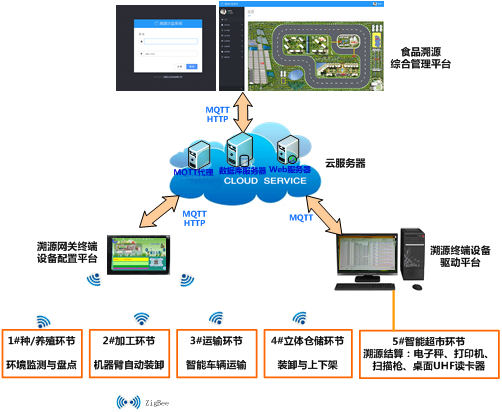 LGWL-SP01型 食品溯源物聯網實訓系統主要分為農牧業生產區、加工廠、交通運輸、倉儲區、超市銷售結算區,分別實現智能農牧業系統、食品加工標簽智能識別系統、車輛運輸跟蹤管理系統、倉儲管理系統、智能超市結算系統等。