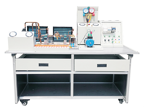 1、 實訓臺采用鋁型材臺架加實訓模塊結構,裝置采用一體化設計,由導軌式鋁合金安裝平臺、空調系統(tǒng)、電氣控制系統(tǒng)等組成。底部安裝有四個帶剎車的腳輪,可以方便的移動和固定。設備配置空調制冷系統(tǒng)管路1套、安全插端子排,壓力表(1.5MPa)1只(3.5 MPa)1只等。