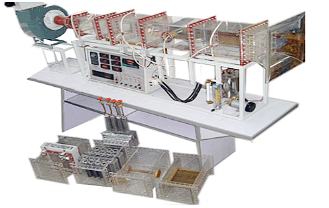 風機,自動調節風門,組合式有機玻璃風洞,有機玻璃實驗管段,有機玻璃叉排、順排實驗段,旋轉圓柱試件,紫銅平板試件,穩壓電源配電位器調節加熱功率,電流表,電壓表,畢托管及差壓傳感器,PT100熱電阻測溫,巡檢儀顯示溫度、阻力、流量,不銹鋼臺架等。