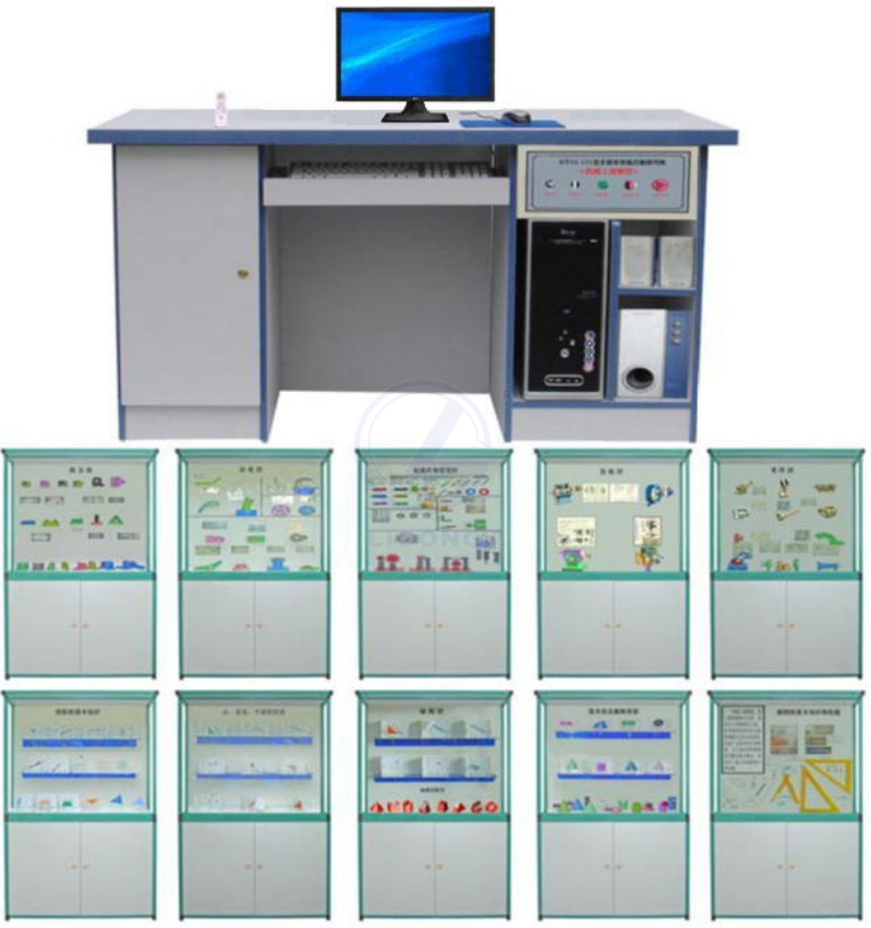 LG-N06型 多媒體智能控制《機械工程制圖》陳列柜是高職高專機械類專業學生必修的一門專業技術基礎課,是培養學生正確識讀和繪制機械圖樣,增強學生工程基礎能力,實踐性較強的陳列柜設備。以培養學生識讀和繪制工程圖樣能力為核心,在理論知識適度的基礎上,突出實踐教學環節。同時,多媒體智能控制《機械工程制圖》陳列柜借助于計算機圖形學技術和多媒體技術,加強直觀性教學,做到教學內容直觀形象,提高學習興趣、降低學習難度。陳列柜共分十個柜和一個電腦控制臺,利用機械工程制圖仿真軟件進行多媒體演示,由PC機電腦控制順序或任選播放動畫圖像演示模型功能。