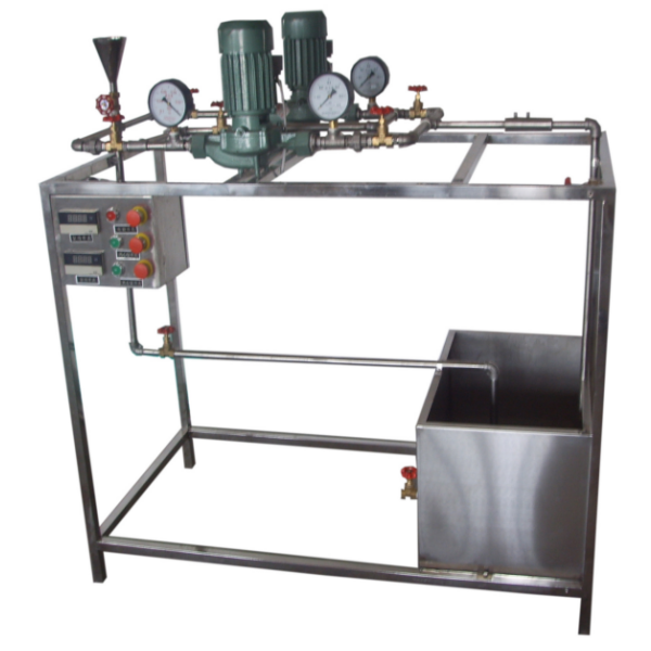 離心泵、蓄水箱、文丘里流量計、壓力表、U型壓差計、單相功率表、玻璃溫度計、實驗管道、閥門、自循環裝置、不銹鋼框架。