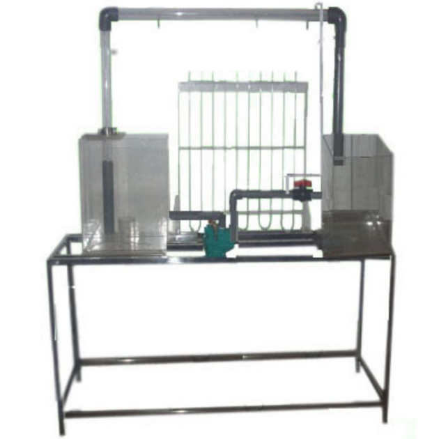 虹吸管、水泵、高位水箱、低位水箱、測壓管、刻度標尺、抽氣裝置、閥門、自循環裝置、不銹鋼框架。