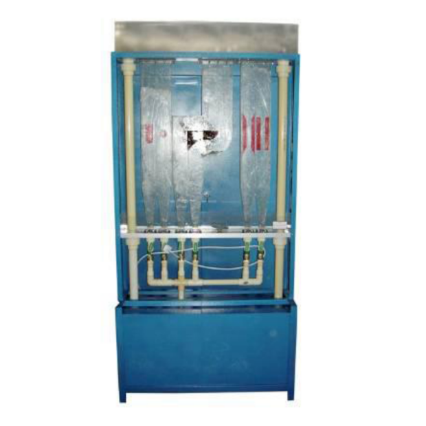 演示流體流經橋墩、圓柱體、直角彎道、圓角彎道和突縮、突擴及漸縮、漸擴管道時漩渦區的變化,并可觀察到典型的卡門漩渦。