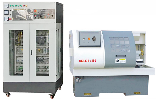 1.數(shù)控車床電氣控制與維修實(shí)訓(xùn)考核裝置由機(jī)床實(shí)訓(xùn)柜、CK6432數(shù)控車床等組成。
