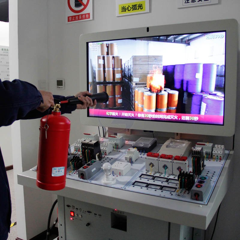 系統設備提供三種滅火器,根據系統出現的不同場景,選擇對應的滅火器,對準火源根部滅火,滅火操作方便,噴頭對位精準,效果逼真。